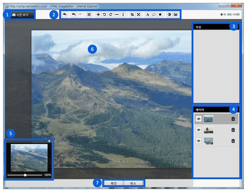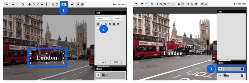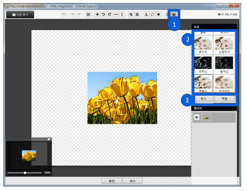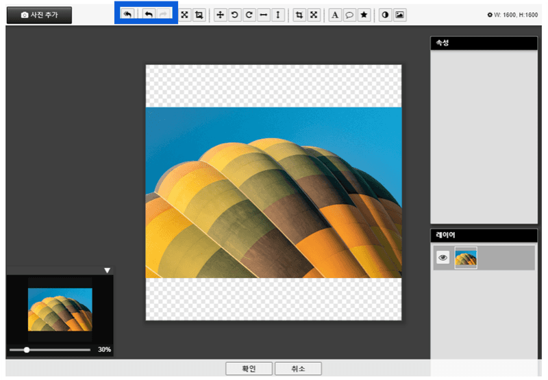 사진 편집을 [취소]하거나, 편집이 완료된 경우 [확인]을 클릭하여 편집한 이미지를 삽입합니다.