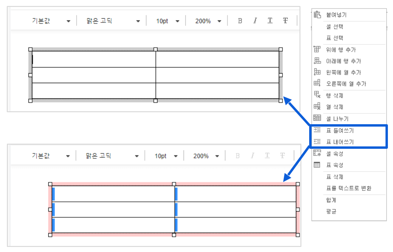 드래그 : 표 테두리를 클릭하여 원하는 크기로 직접 조정할 수 있어요.